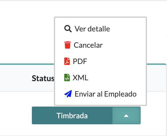 En cada nómina generada podrás ver, descargar los archivos (PDF y XML), cancelar, enviar por correo los documentos fiscales de la nómina al empleado (en caso de ser necesario), así como generar una nueva nómina a partir de una nómina ya creada.