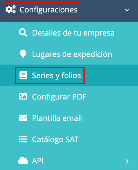 - Dirígete a Menú lateral – Configuraciones – Series y folios.