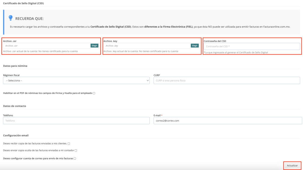 Sube tu Certificado de Sello Digital en tu plataforma de facturación electrónica